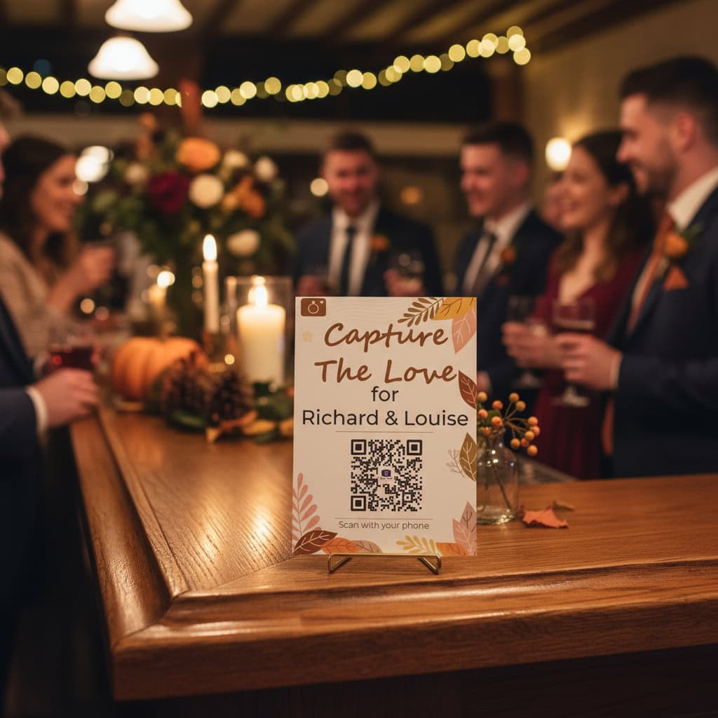 There’s something undeniably romantic about autumn weddings – the golden light, warm colors, and intimate atmosphere create the perfect backdrop for beginning your forever story. Our autumn wedding QR code photo sharing cards capture this seasonal magic while ensuring every precious moment of your fall celebration is preserved.